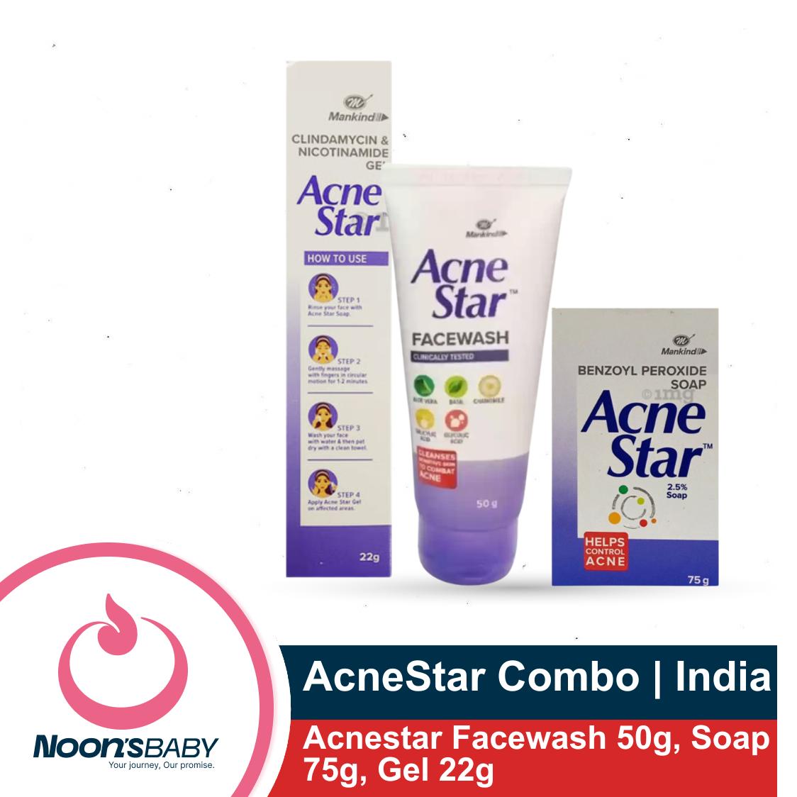 AcneStar Combo Pack | Acnestar Facewash 50gm | Acnestar Gel 22gm | Acnestar Soap 75gm | Made in India