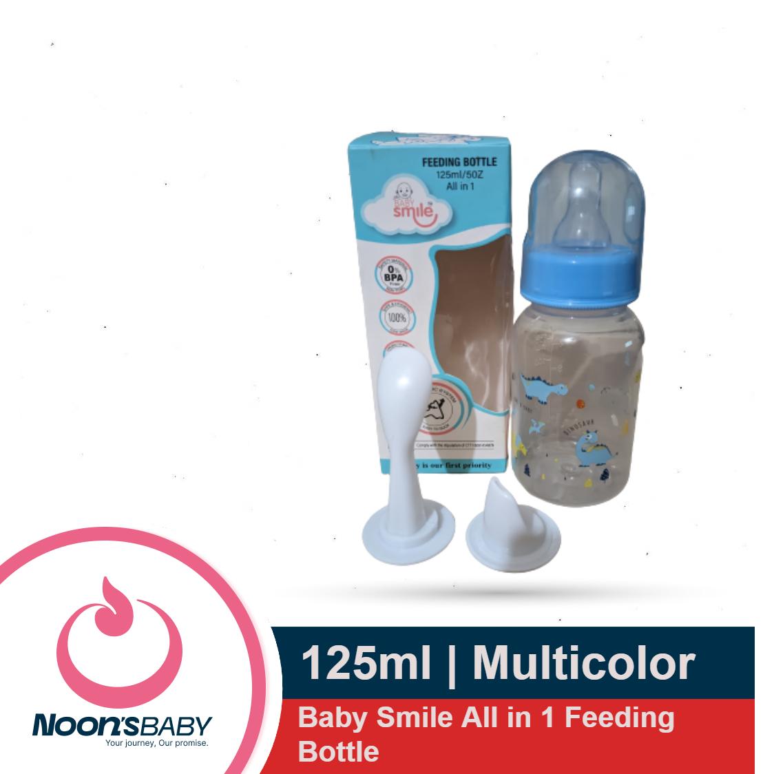 Baby Smile Feeding Bottle All in 1 125ml Baby Plastic Bottle Silicone Nipple with Extra 2 Spoon