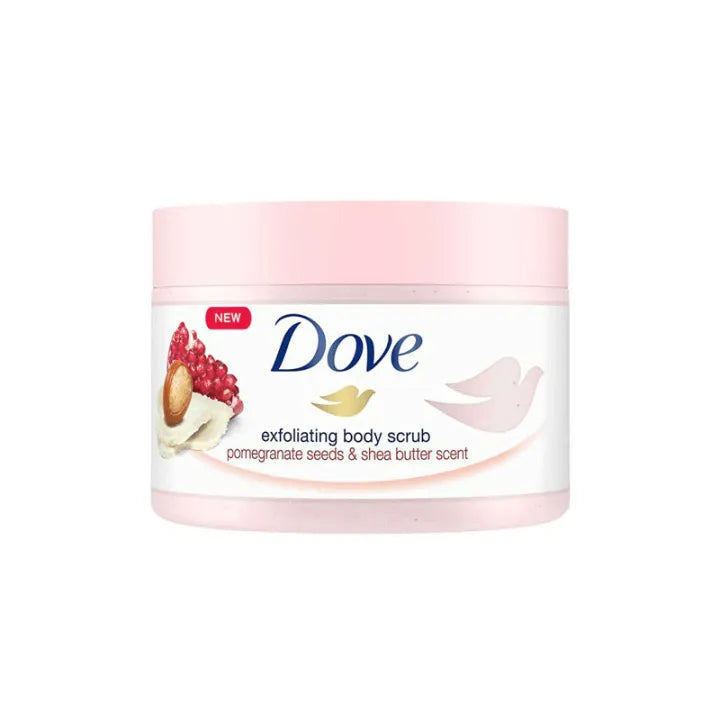 Dove Exfoliating Body Scrub Pomegranate Seeds 225ml / Macadamia & Rice Milk Scent 225ml / Body Polish Brown Sugar & Coconut Butter 298gm / Oatmeal & Calendula Oil 298gm | Made in Slovakia
