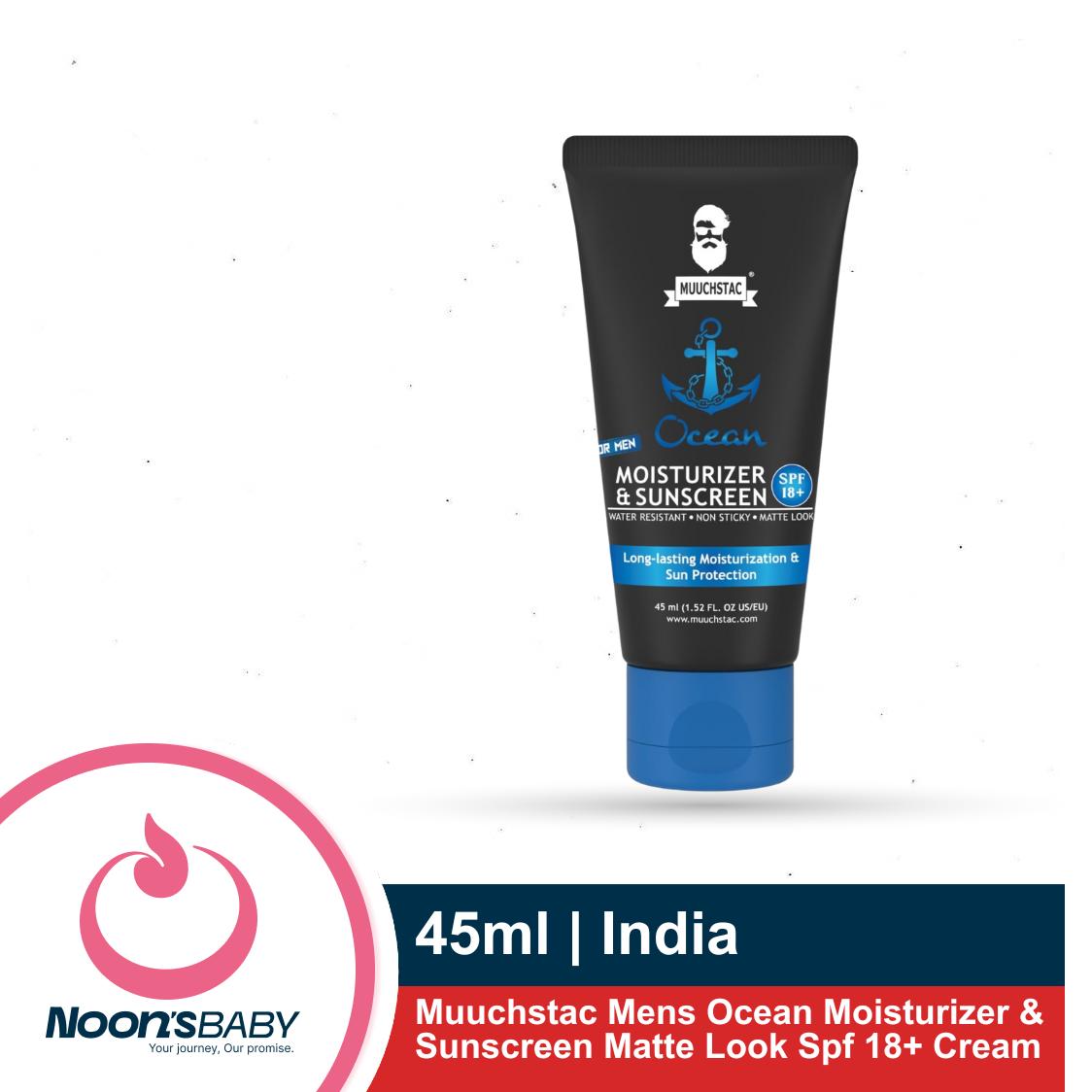 Muuchstac Mens Ocean Moisturizer & Sunscreen Matte Look Spf 18+ Cream 45ml With Turmeric & Aloe Vera Beads, Non-Sticky & Water Resistant