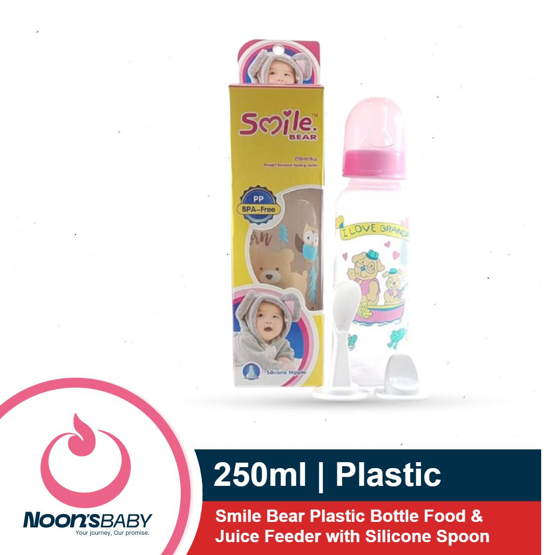 Smile Bear Plastic Bottle Food & Juice Feeder with Silicone Spoon 250ml